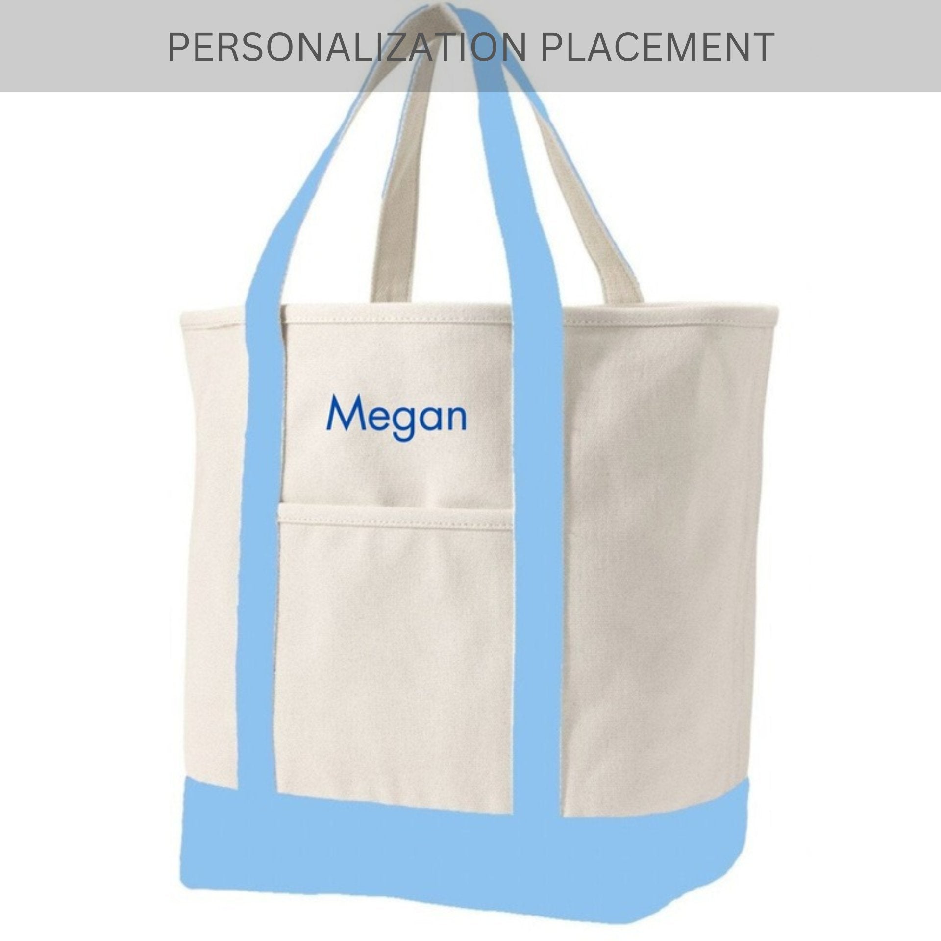 Our brand new Karma tote bags are the perfect gift or for yourself! These open top totes are made of thick, durable canvas. There is a front pocket too! The straps and bottom are the perfect color to accessorize every outfit.