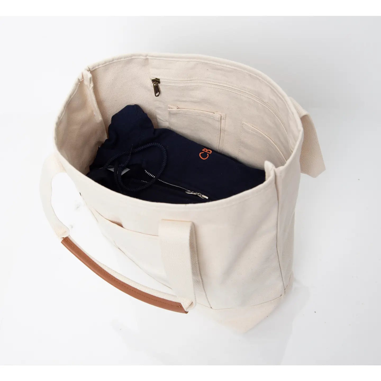 Utterly effortless and classic. Our essential tote provides a clean, modern look offered in a simplistic design that you can carry anywhere; the perfect getaway bag. Open top with a front exterior pocket. Webbed handle with 9" drop and genuine leather accents. The internal organizer features a zip pocket and two open pockets, making it an excellent storage solution for items like keys and small devices.